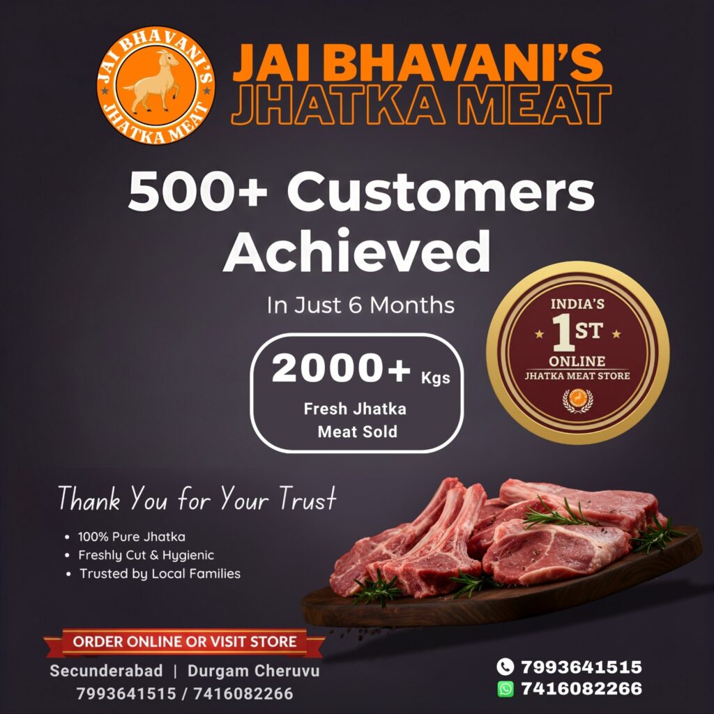 The journey of Jai Bhavani’s Jhatka Meat began on June 13th with a clear vision to provide fresh, hygienic, and 100% authentic Jhatka meat through a convenient online platform. From day one, the focus has been on delivering quality products while maintaining trust and transparency with customers. Starting this portal was not just about selling meat online, but about creating a reliable service that meets the needs of modern customers who value both tradition and convenience. This launch marked the beginning of a successful journey driven by customer satisfaction and consistent quality.